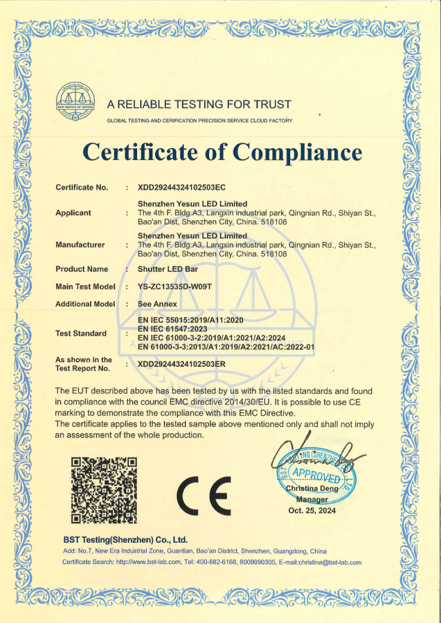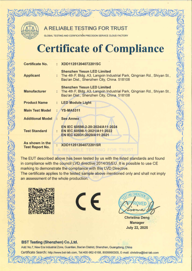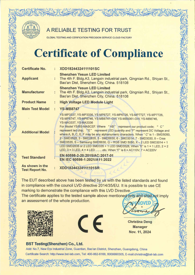 프리미엄 소재와 엄격한 QC 프로세스는 당사의 모든 LED 제품에 대해 높은 효율성, 긴 수명 및 낮은 빛 감쇠를 보장합니다. 모든 품목은 CE, RoHS, UL, UKCA, ETL 및 기타 글로벌 규정 준수 표준 인증을 받았습니다.